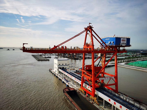 由杭州華新機(jī)電工程有限公司總包的一臺(tái)設(shè)計(jì)生產(chǎn)率為750t/h的螺旋卸船機(jī)總裝完成進(jìn)入調(diào)試階段。該設(shè)備用于國(guó)家能源集團(tuán)宿遷發(fā)電有限公司二期擴(kuò)建2×660MW超超臨界二次再熱機(jī)組工程。本工程位于宿遷市南偏東距市中心18km處的京杭大運(yùn)河南,二期新建碼頭共有4個(gè)泊位,配置兩臺(tái)螺旋式卸船機(jī)、兩臺(tái)16t清艙用港口門座機(jī)。