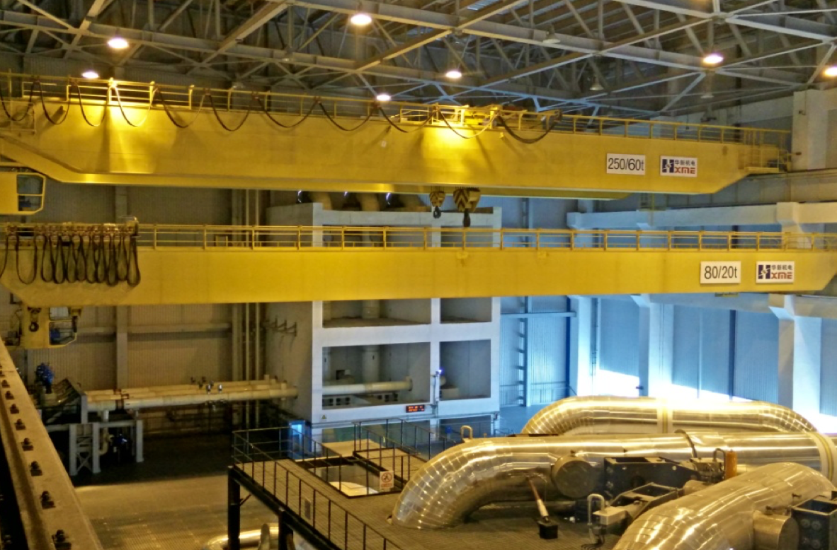 公司設(shè)計(jì)制造的所有橋機(jī)及門機(jī)的起升小車系消化吸收國(guó)外先進(jìn)技術(shù),結(jié)合我國(guó)當(dāng)時(shí)的配套水平,綜合研究院多年的技術(shù)研制經(jīng)驗(yàn),遵照GB/T3811-2008《起重機(jī)設(shè)計(jì)規(guī)范》、GB/T14405-2011《通用橋式起重機(jī)》等標(biāo)準(zhǔn),同時(shí)參照國(guó)外有關(guān)起重機(jī)標(biāo)準(zhǔn)及歐洲搬運(yùn)協(xié)會(huì)主流橋式起重機(jī)機(jī)型研制而成,節(jié)能減排,經(jīng)濟(jì)環(huán)保,特別適合地下廠房、新型工廠及大噸位貴重物件的吊裝、搬運(yùn)就位工作。公司首臺(tái)臺(tái)橋機(jī)為1990年研發(fā)、1992年投入生產(chǎn)的寧波北侖電廠80/20t橋式起重機(jī),公司首臺(tái)臺(tái)門機(jī)為1994年向富春江發(fā)電廠提供的2×20t尾水門機(jī)。近三十年的發(fā)展,已向國(guó)內(nèi)外眾多優(yōu)質(zhì)客戶提供千余臺(tái)橋機(jī)和門機(jī)設(shè)備,是目前業(yè)內(nèi)最先進(jìn)、最成熟的低凈空小車結(jié)構(gòu)。目前制造過(guò)的單小車橋機(jī)最大額定起重量為800t,雙小車橋機(jī)最大額定起重量為500t+500t,具備1500噸橋機(jī)的設(shè)計(jì)制造能力;制造過(guò)的門式起重機(jī)最大額定起重量為900t的造船龍門吊。